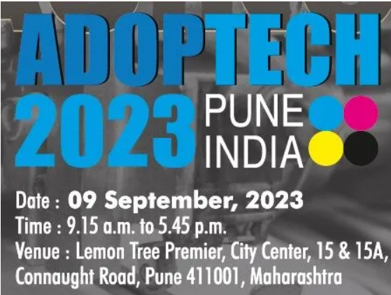 All India Federation of Master Printers (AIFMP), an apex body of printers in India, is organizing the International Conference “ADOPTECH2023”. The event is supported by Government of India, International Co-Operation Section Ministry of MSME (Micro, Small, Medium Enterprises), New Delhi. The International conference “ADOPTECH2023” will be hosted by The Poona Press Owners Association on 9th September 2023 at Hotel Lemon Tree Premier in the city of Pune, the Oxford of the East.