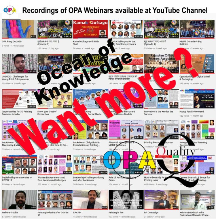 Offset Printers’ Association (OPA) decided to help the industry learn and benefit during the difficult times of lockdown. The association utilised the expertise of its team and started educating the printers through a series of daily Webinars and other activities.