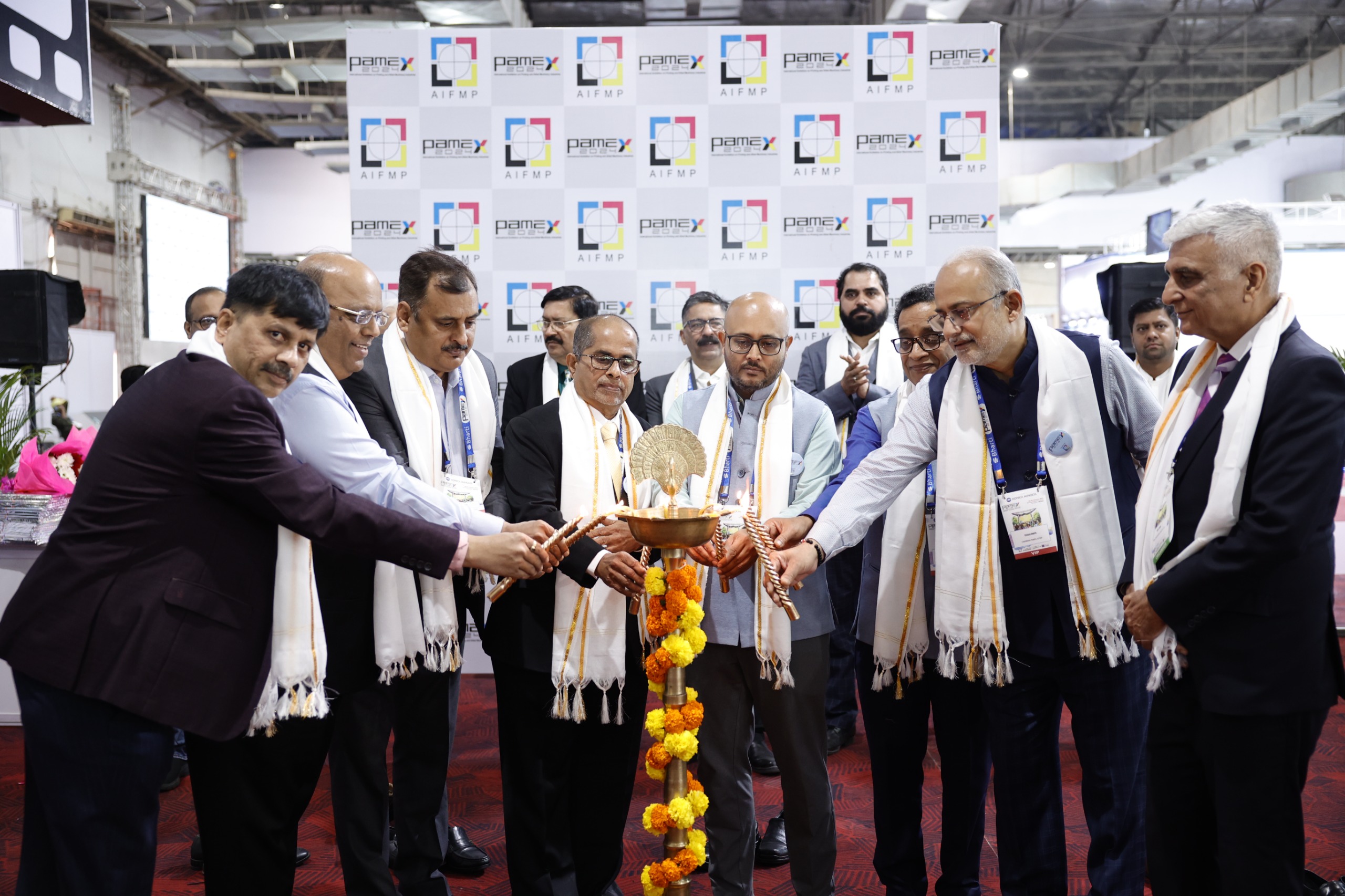 The opening event was held in the morning hours of the first day of the Show with the lighting of the lamp. The dignitaries at the inaugural included N. Dutta Baruah, President, All India Federation of Master Printers (AIFMP); Umesh Neema, Hon. General Secretary, AIFMP; Anil Kariyawasam, Sri Lanka Association of Printers (SLAP); Manoj Mehta, Chairman GPEA Awards and President FAGPA; Raveendra Joshi, Past President AIFMP and President WPCF; Anil Arora, President, Print-Packaging.com Private Limited; Tushar Dhote, Chairman, Pamex 2024, AIFMP; Prakash Canser, Vice-President (West), AIFMP; Amit Shah, President, BMPA; Sanjay Patel, BMPA; Jaiveer Singh, President, IPAMA; Dilip Bhise, President, SPAI; Ravindra Reddy, AIFMP; Rahul Kulkarni – Co Chairman NAEP; Saubhagya Sakseria; Virendra Malik, Past President, AIFMP; and Shashi Sharma, Past President, AIFMP.